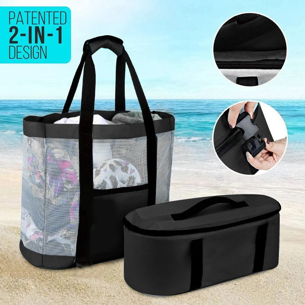 Пляжные сетчатая хозяйственная сумка со съемной сумкой-холодильником, упаковочные Органайзеры