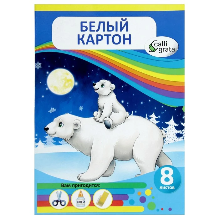 Отзывы о Картон белый мелованный А4 8 листов Мишки на полюсе цветная картонная обложка 240