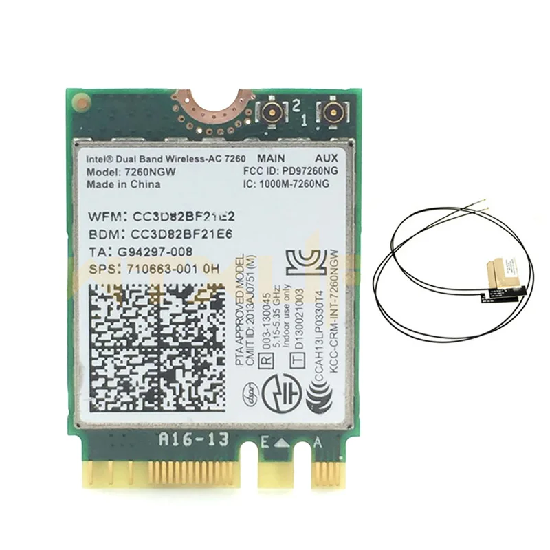 Посылка:1 * карта беспроводной сети переменного тока 7260 NGFF;2 * внутренние антенны (40-60 см)