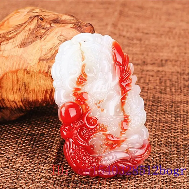 Красно-белый Нефритовый дракон кулон жадеит китайские ювелирные изделия амулет натуральные подарки для мужчин и женщин ожерелье очарование резная Мода