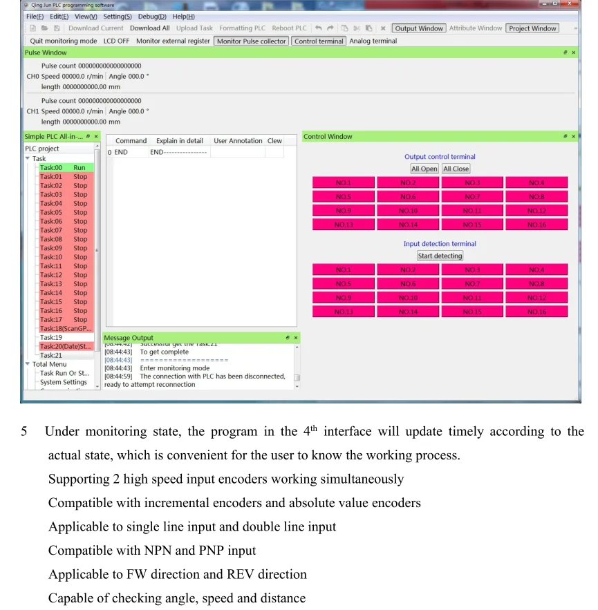 1. Может заменить обычный PLC: пользовательская Кнопка моделирования начинает приостанавливать функцию аварийной остановки. Несколько входов переключателя могут быть подключены к различным датчикам, реализовывать логическую работу потока действия ПЛК, настроить Программирование выходной функции и самостоятельно или объединить функции синхронизации в несколько временных периодов.