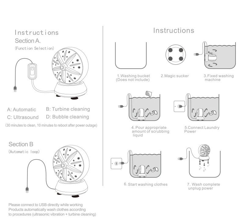 Этот продукт является ультразвуковой стиральной машиной, которая может быть использована в туризма, на открытом воздухе и в других случаях. Он компактный и портативный и имеет хороший эффект очистки.