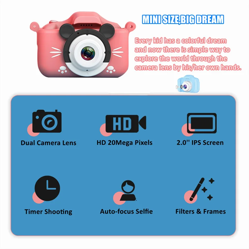 Отзывы о Детская забавная камера с двойным объективом цифровая для съемки фото HD1080p видео