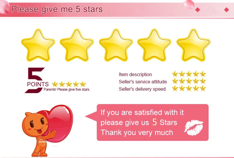 2. Если вы удовлетворены полученным товаром, пожалуйста, оставьте нам положительный отзывы и 5 баллов DSR.
