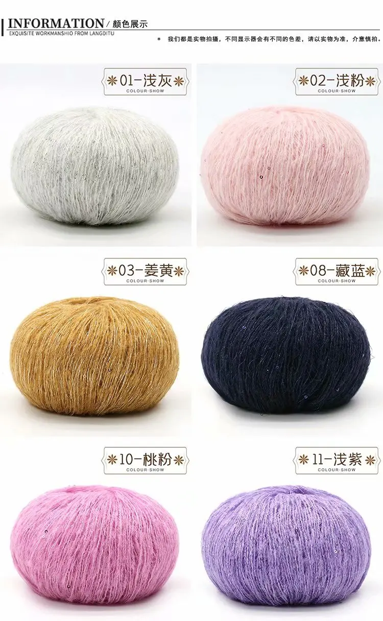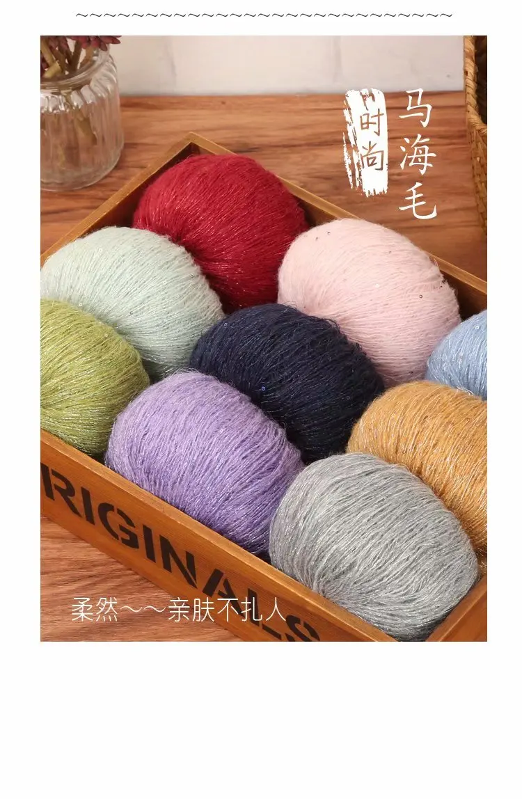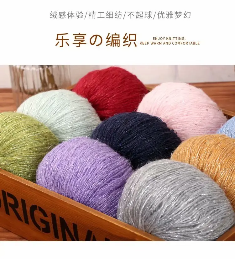 Отзывы о Мохеровая пряжа с пайетками 25 г для вязания крючком приятная Кожи Детская