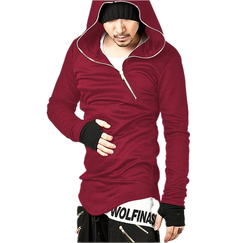 Свитер с капюшоном для молодых мужчин, необычная диагональная Молния и перчатки, приталенная куртка, Спортивная Толстовка, спортивные толстовки для мужчин