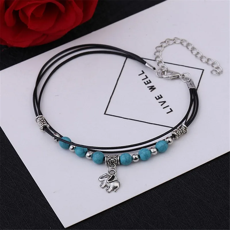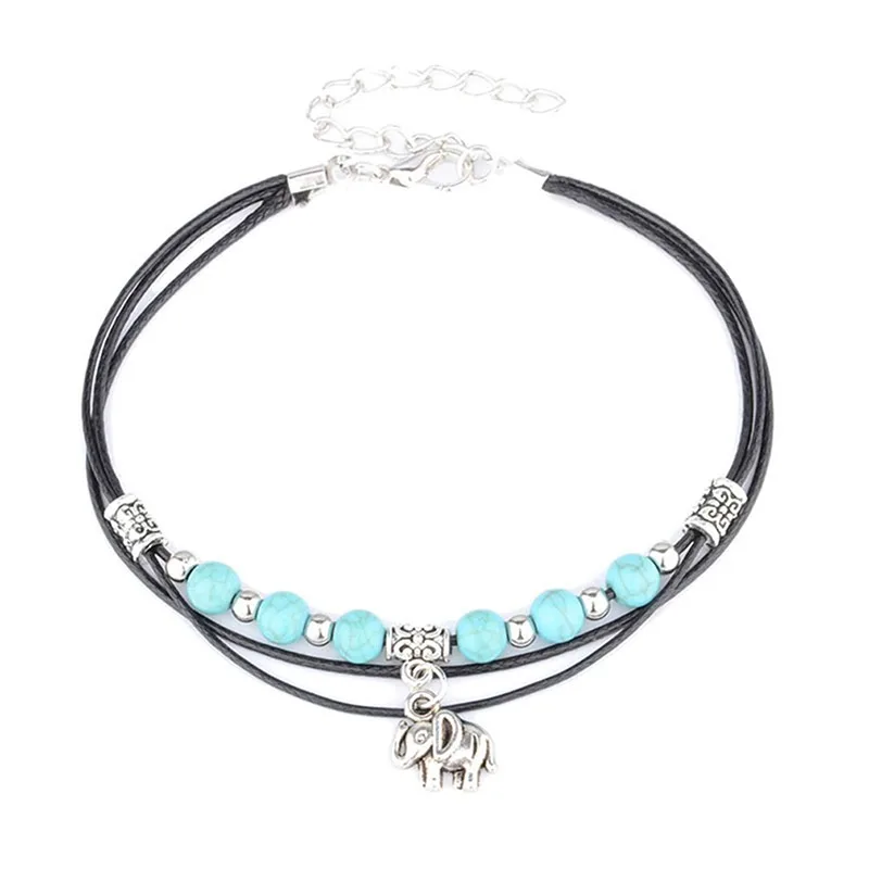 Стиль 4:Длина цепи 22 см,Удлинительная цепь 6,5 см, Бирюзовый диаметр 0.6см, подвеска слон размер 1,1*1,1 см