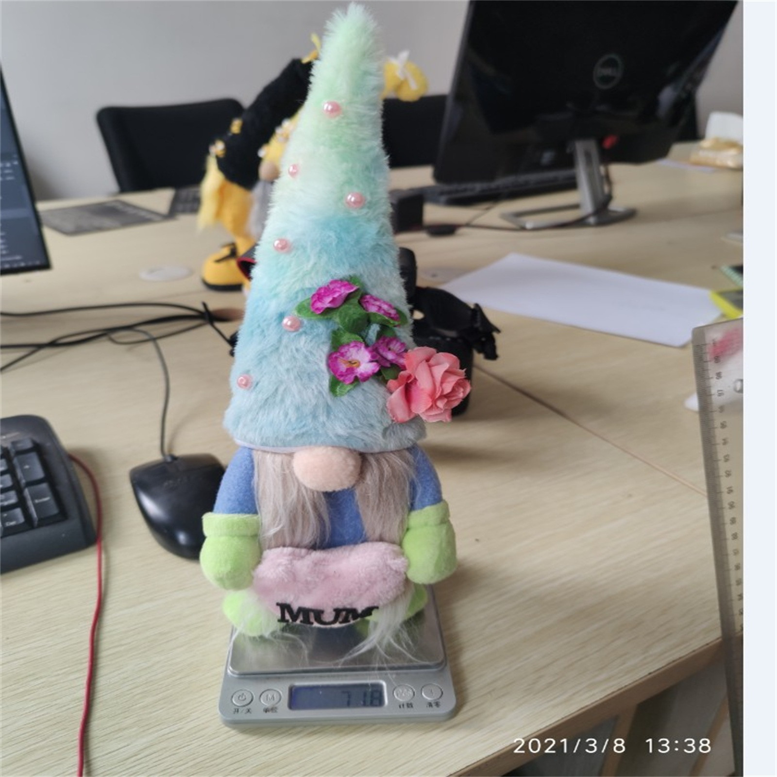 - Материалы --- его тело и шляпа изготовлены из мягкого войлока, нос из шерсти, Волокна длинной белой бороды и металлическая проволока на высокой шляпе. Взвешенный Низ позволяет ему стоять самостоятельно, а цвета галстука-красителя также используются для Обогатите внешний вид куклы