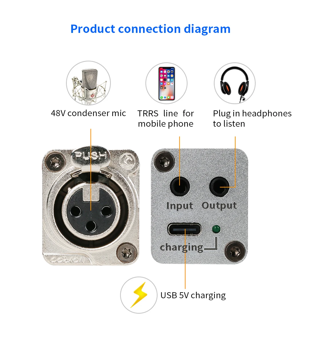 5.Источник питания 48 В является стабильным и сильным, и микрофон с низким уровнем шума удобенИ гладкая в использовании;
