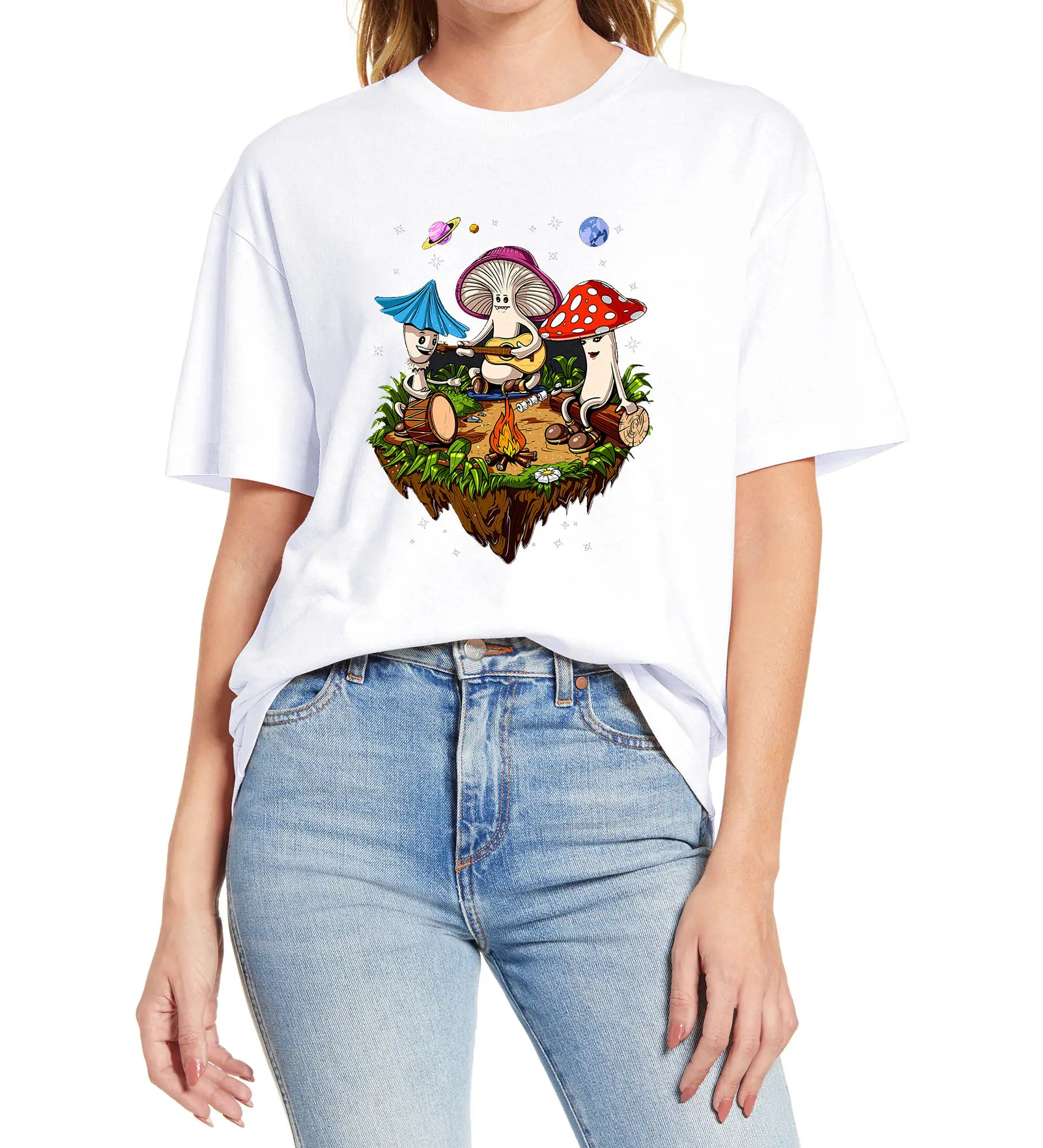 Хиппи грибы Кемпинг Psychedelic лес грибы фестиваль Смешные унисекс футболка для влюбленных женская футболка Harajuku топы тройник
