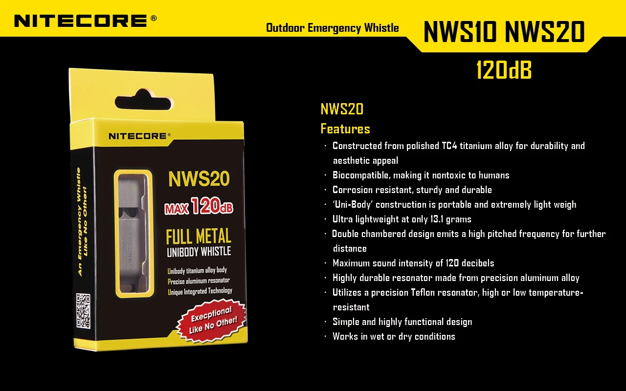 Отзывы о Nitecore NWS10 NWS20 титановый аварийный ожерелье со свистком Подвеска для улицы 120 дБ с