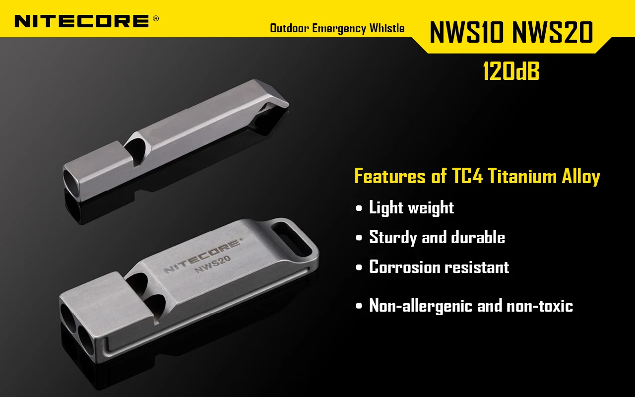 Nitecore NWS10 NWS20 титановое аварийное ожерелье со свистком кулон открытый 120 дБ с цепочкой для ключей + бесплатная доставка
