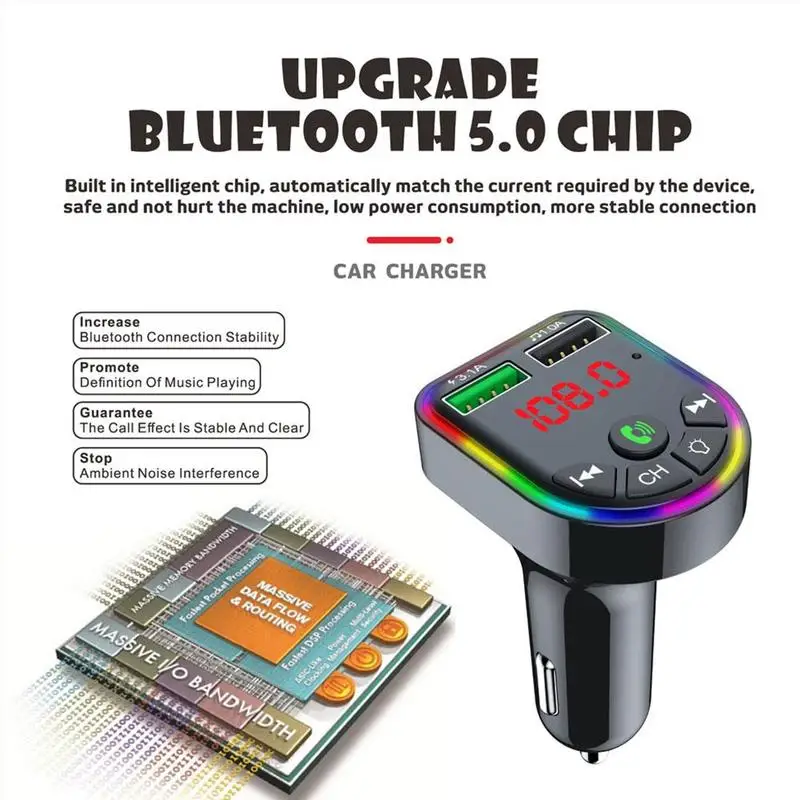 1. Bluetooth-Совместимость с громкой связью; Usb-порт с функцией зарядки 3.1A. 2. Подавление эха и обработка шума во время вызова; 3. Стерео Bluetooth-совместимость и технология передачи FM; 4. Поддержка usb/ tfcard / Bluetooth-совместимая функция; 5. Поддержка mp3/wma формат музыки; 6. Функция автоматического отключения памяти; 7. Мощность прикуривателя: dc12v-24v напряжение; 8. Bluetooth-совместимая Версия 5,0 FM Частота передачи: 87,5 ~ 108 МГц 9. Обнаружение напряжения; 10. Цветная атмосферная лампа.