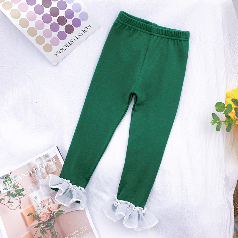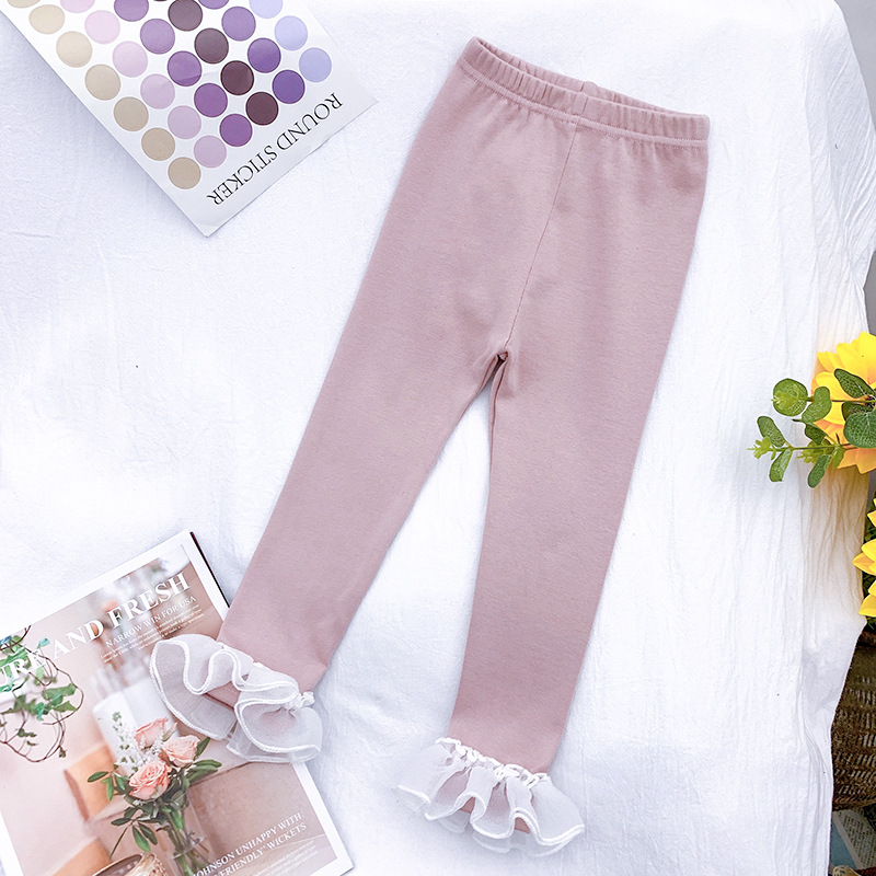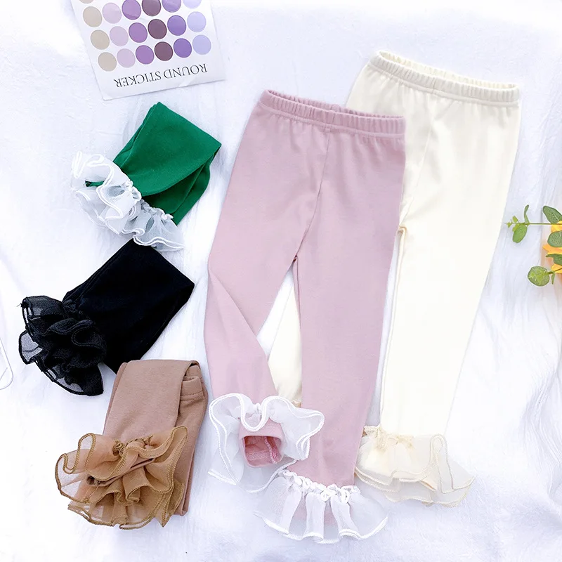 Весенние леггинсы с кружевами для маленьких девочек; Модная Осенняя детская одежда для девочек; Однотонные элегантные детские штаны для маленьких девочек