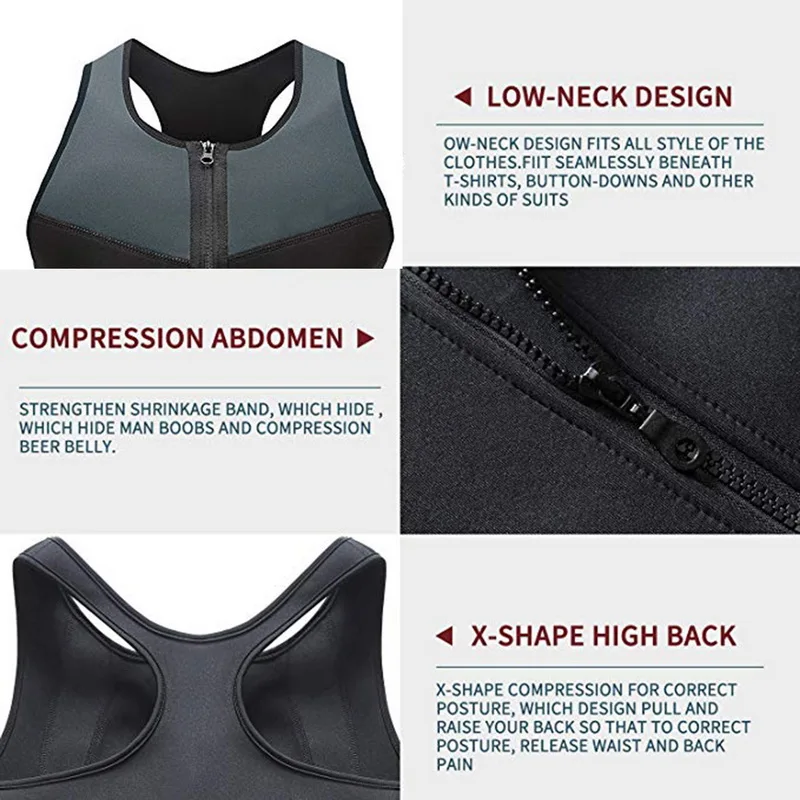 Мужской модный неопреновый жилет для фитнеса, сауны, новый спортивный жилет с горячей талией, тренажер для тела, костюм для похудения, жилет на молнии для похудения Посылка включает в себя: мужской формировательЦвет: черный