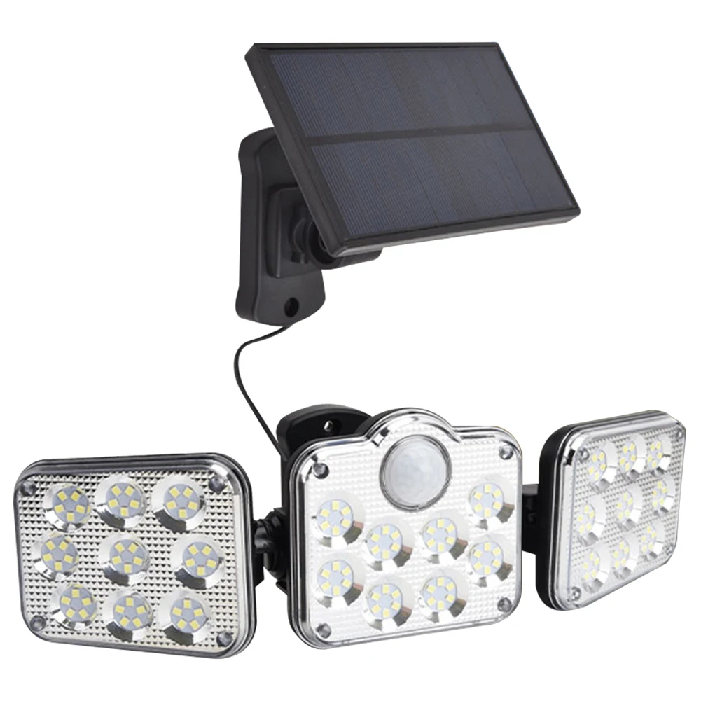 3 головы датчик движения светодиодный солнечный свет 3 режима Наружное освещение супер яркий IP65 Водонепроницаемый пульт дистанционного управления настенный светильник