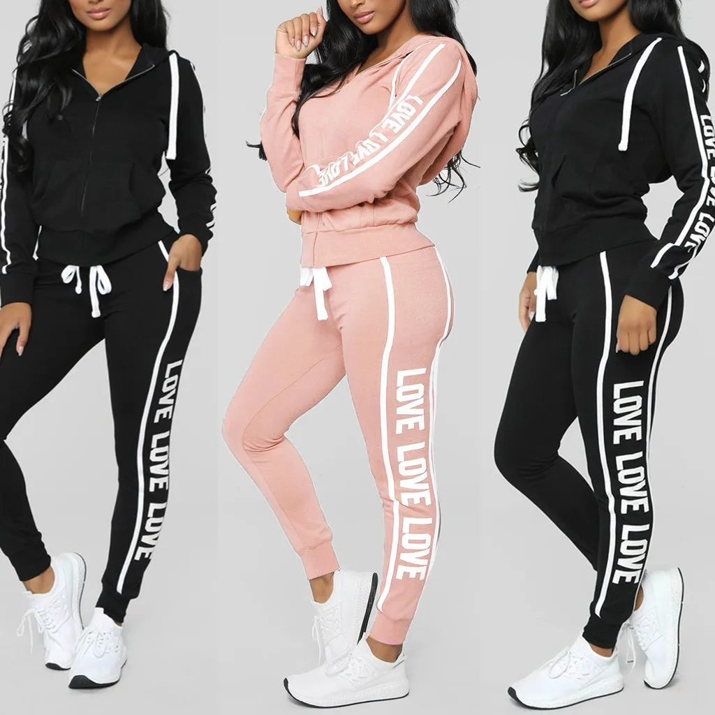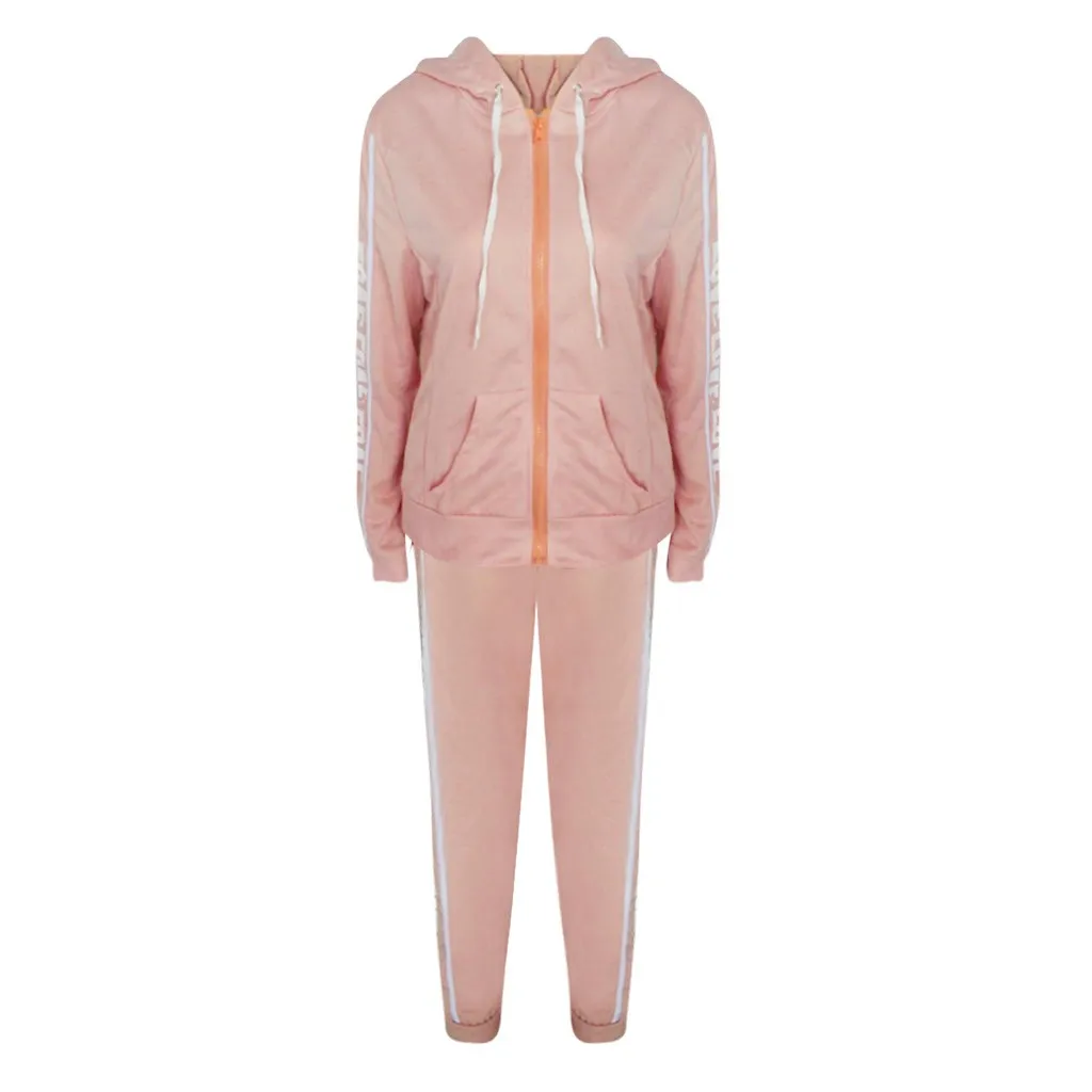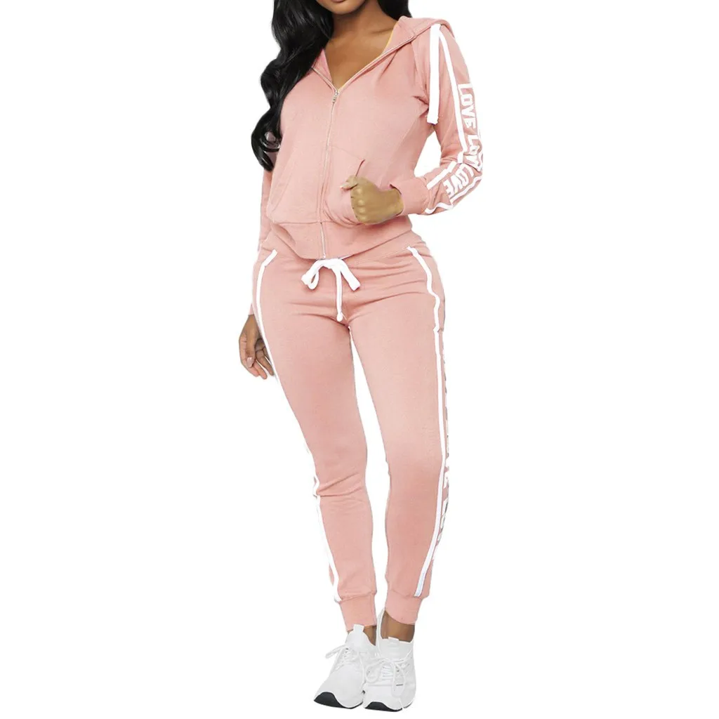 Модный женский повседневный спортивный топ в полоску на молнии с длинным рукавом + длинные штаны