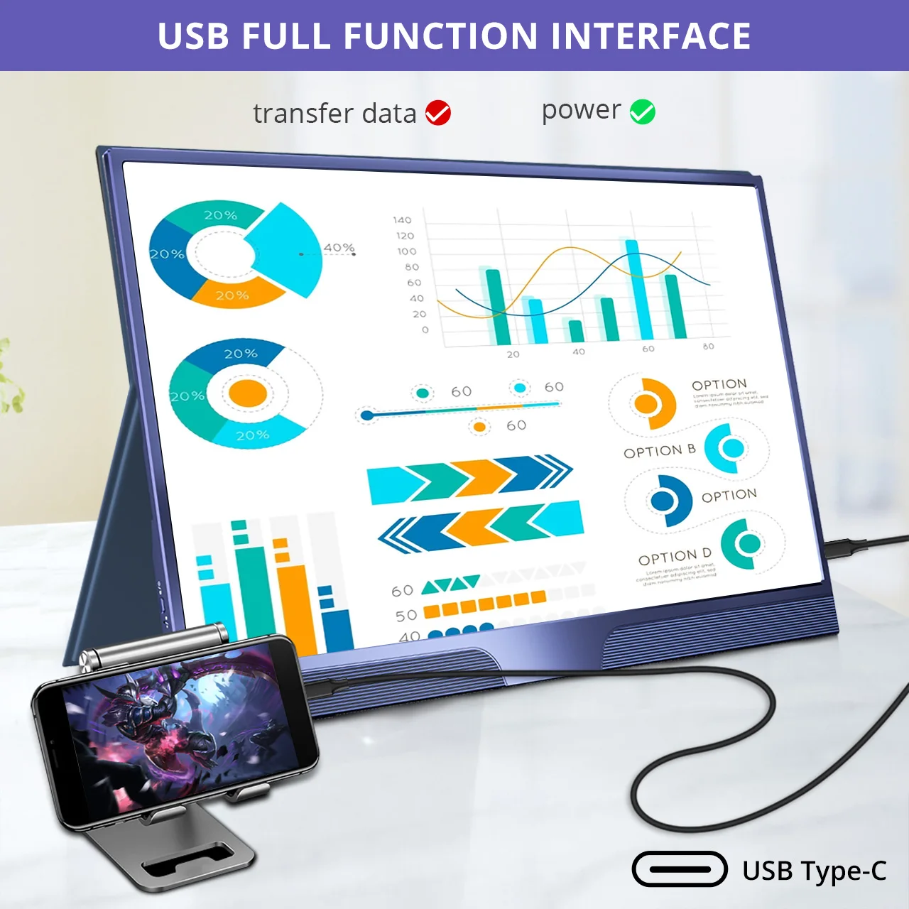 ✔Потрясающий ультра FHD портативный дисплей✔Экран IPS✔Угол обзора 178 °✔Двойные интегрированные динамики✔15,6 дюймов Большие размеры Экран