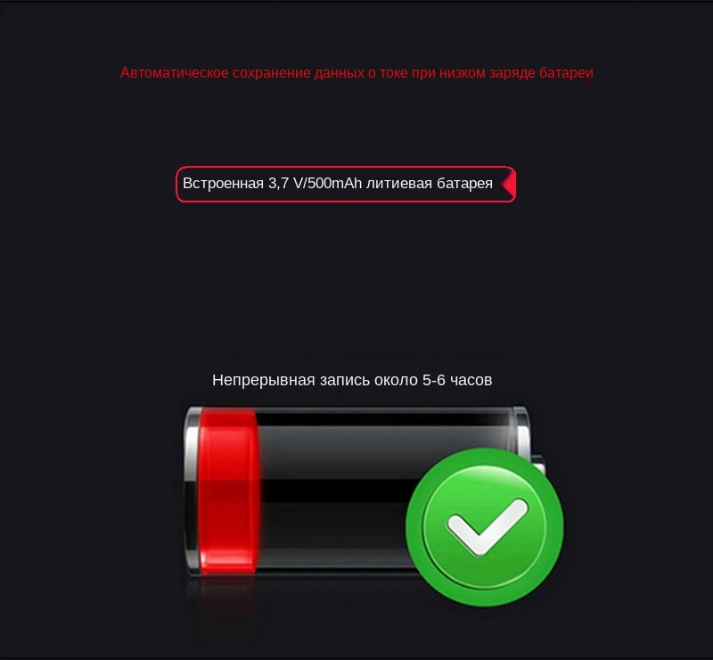 5. Батарея Емкость: 3,7 V/500 mAh ионно-литиевая Батарея