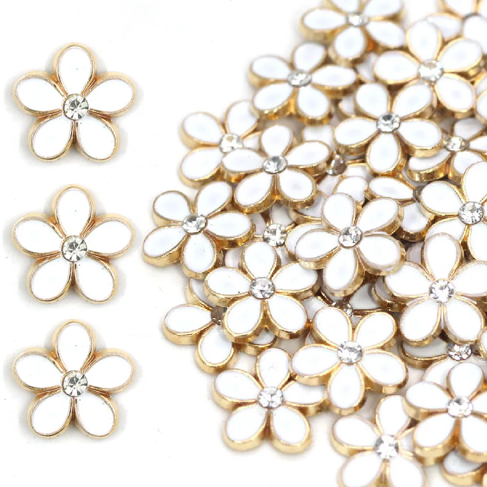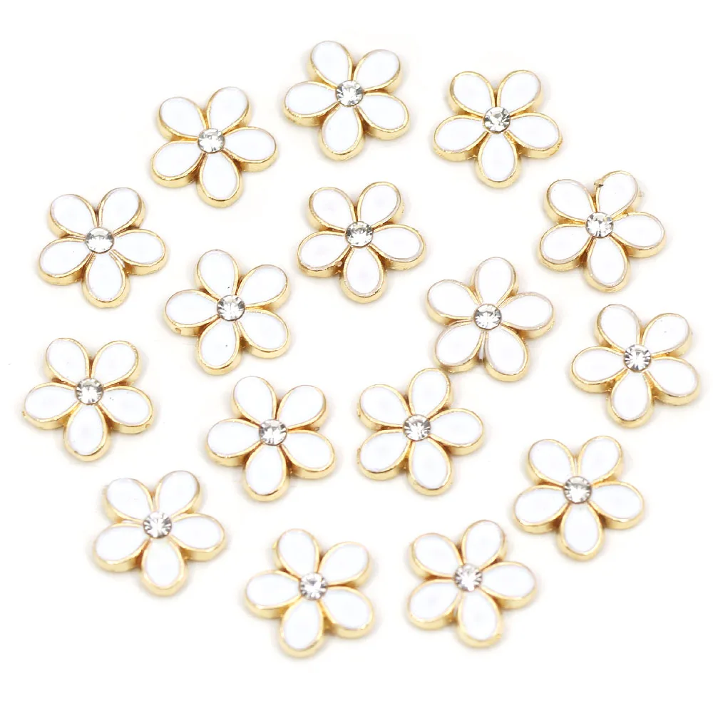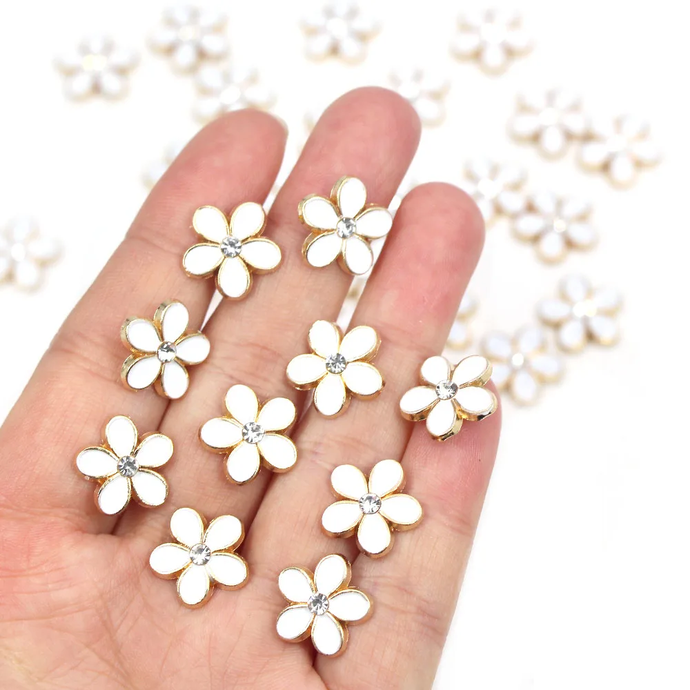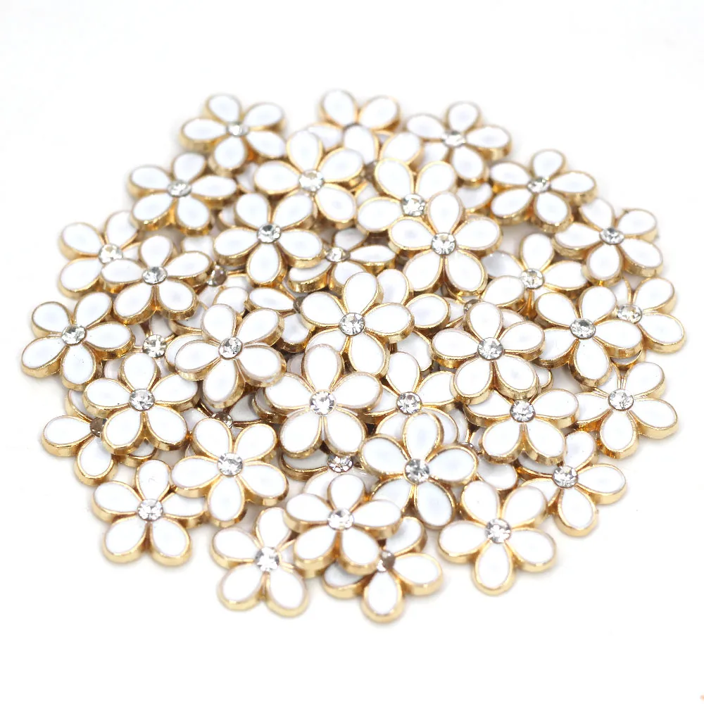 Отзывы о 20 шт. 13 мм белые цветы горячей фиксации сплав Шпильки золото плоская задняя