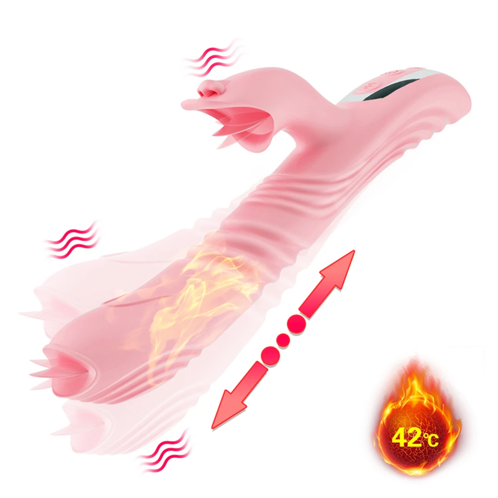 Двойной язык кунилингус вибратор Телескопический вращающийся фаллоимитатор Отопление влагалище клитор Вибратор для стимуляции взрослые интимные игрушки для женщин