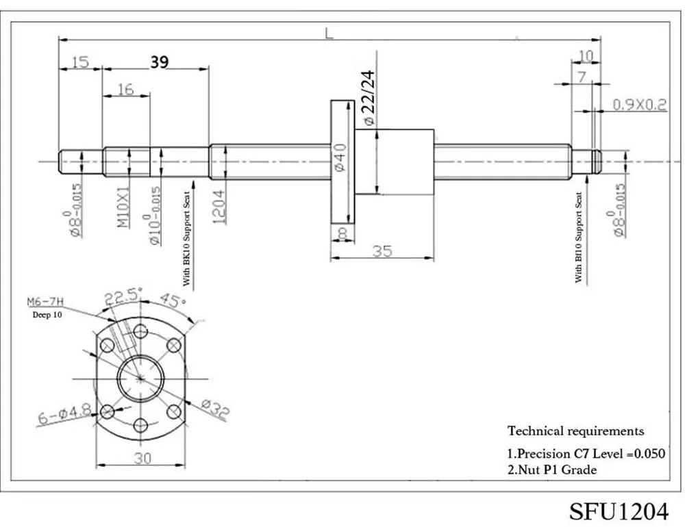 Шариковый винт SFU1204:12 относится к диаметру свинцового винта Φ12 мм, 04 относится к расстоянию гайки для вращения круга (Φ4мм), также известный как шаг и свинец свинцового винта.