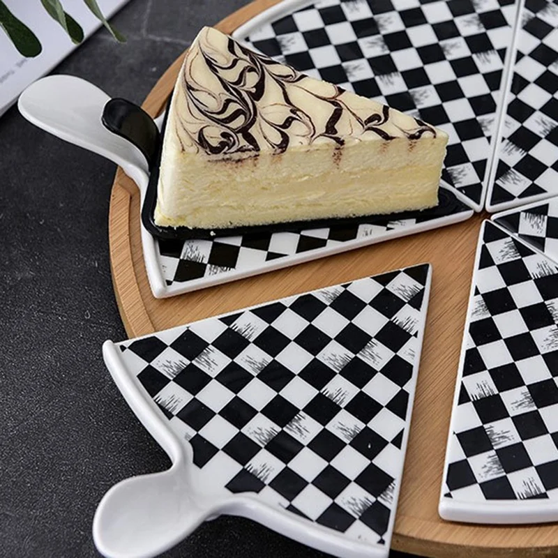 3. Трехугольная тарелка для пиццы с уникальным деревянным лотком, отлично подходит для подачи пиццы и десертов.