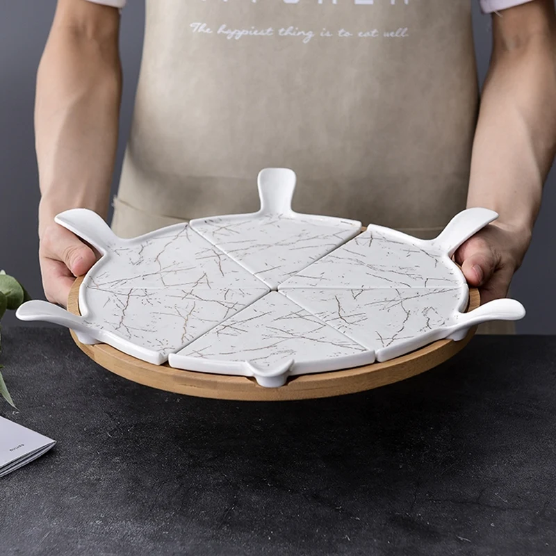6 шт. роскошный керамический поднос для пиццы с вращающейся основой, домашний круглый десерт для торта, плоская тарелка, посуда для отеля