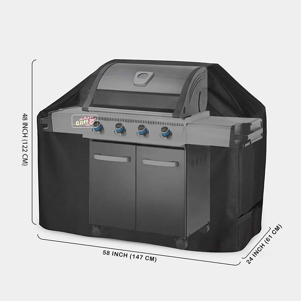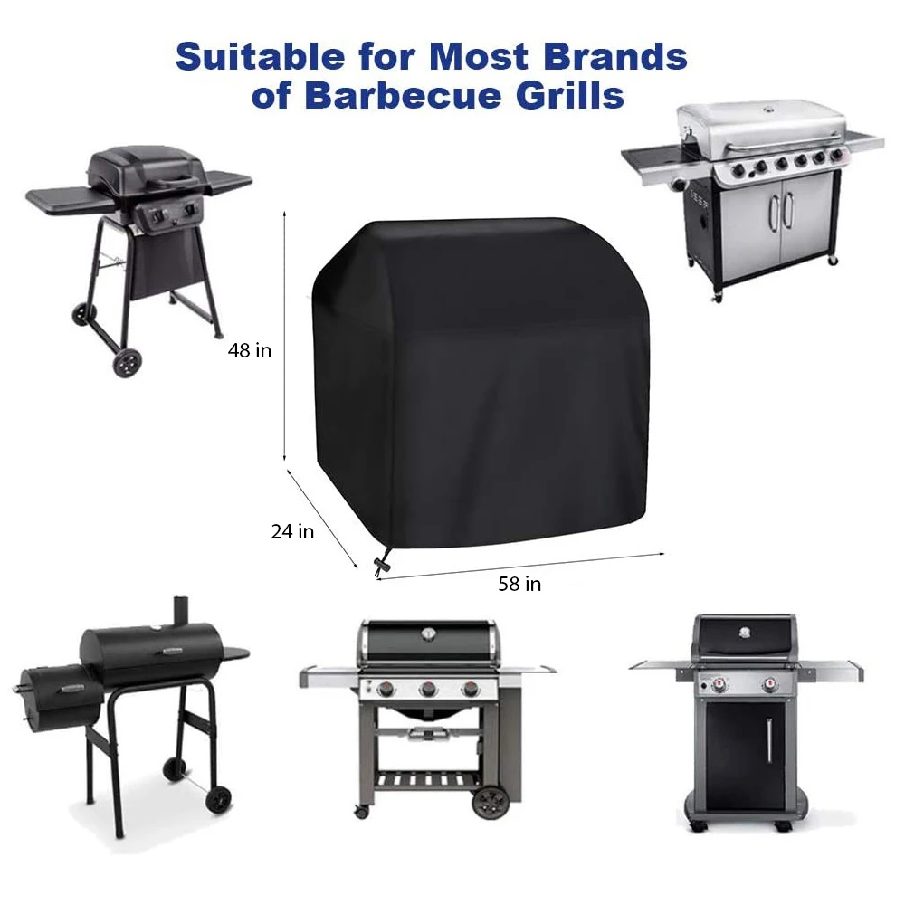 Сверхпрочный материал 420 D: Этот чехол для гриля для барбекю изготовлен из атмосферостойкой и пыленепроницаемой ткани 420 D из полиэстера. Наш чехол для гриля может защитить ваш гриль от элементов сил, таких как ветер, песчаные бури, солнце и дождь и т. д. Ветроустойчивость. Никогда не беспокойтесь о том, что чехол для гриля сдувается при сильном ветре благодаря прикрепленным тканевым ремням с крючками и петлями, которые можно затянуть для идеальной посадки. Складной и удобный для переноски: чехол легко складывается в сумку, которую удобно носить с собой повсюду, материал ткани Оксфорд более прочный, прочная конструкция. Легко моется: просто намотайте шланг водой, и грязь скоро исчезнет. Высушите на солнце для следующего использования. Поставляется с сумкой для хранения на молнии, чтобы брать его с собой куда угодно и держать крышку барбекю удобно хранить, когда он не используется. Широкая совместимость: сверхпрочный защитный чехол для гриля. Размеры: 58 дюймов x 24 дюйма x 48 дюймов. Проверьте размеры вашего гриля для правильной посадки. Этот чехол для газового гриля подходит для большинства брендов грилей, таких как Char Broil, Kenmore, Brinkmann, Nexgrill, Holland, Jenn Air и т. д.