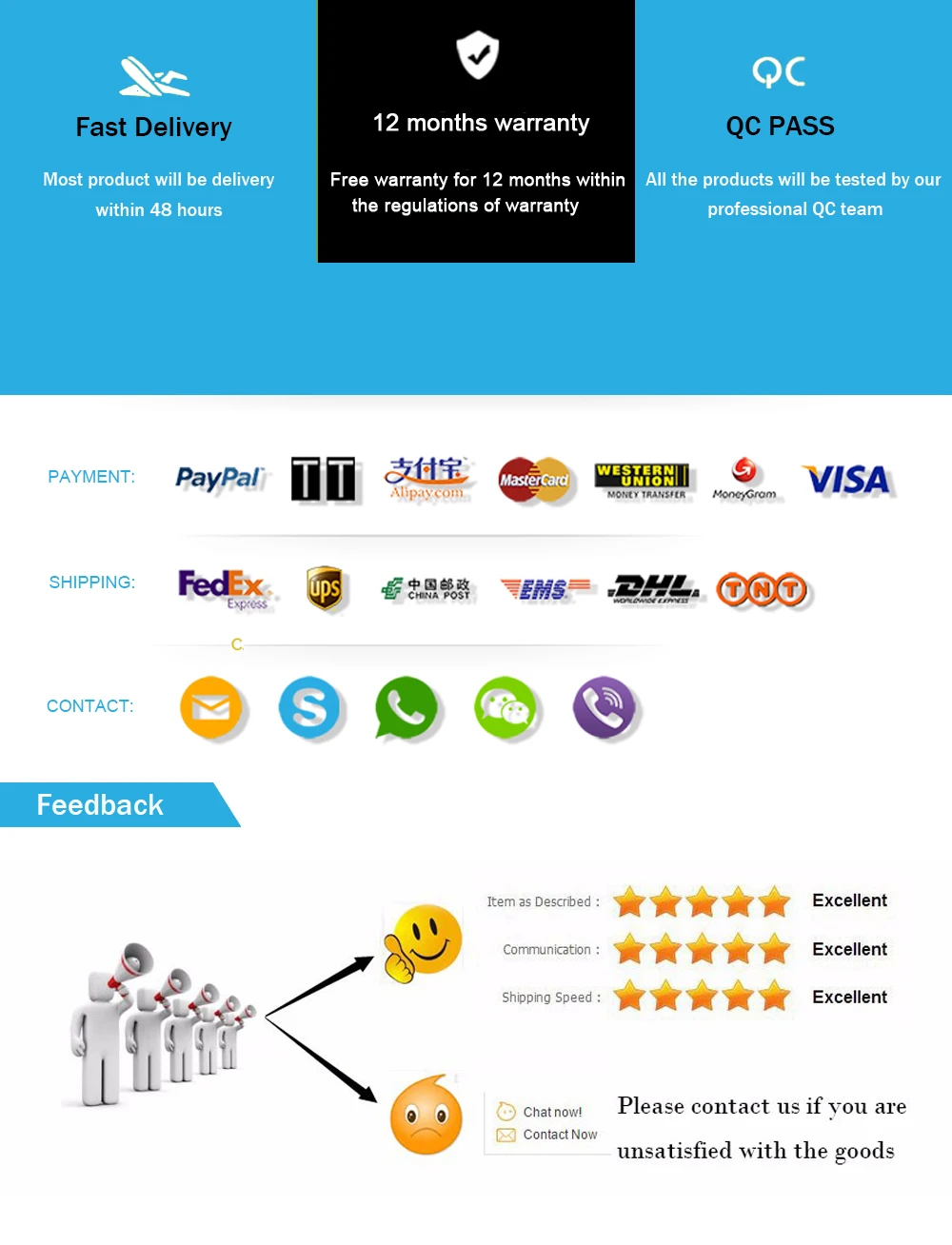 2. Пожалуйста, свяжитесь с нами, чтобы лучше решить любую проблему, прежде чем оставлять нейтральные или негативные отзывы.