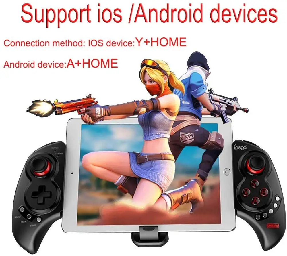 Совместим с: геймпад iPega 9087s предназначен для планшетов и смартфонов на базе Android с поддержкой BT, Android smart TV, для системы IOS, TV box, windows 7/8/10 PC, приставка настройки. Функция ускорения Турбо: игровой контроллер iPega 9087s делает его более сильным и быстрым во время игры. Беспроводная передача: 9087s Джойстик Геймпад может быть от 6 до 8 метров широкий диапазон управления работой. Регулируемый угол обзора: включает в себя телефон чип, iPega беспроводной геймпад поддерживает мобильный телефон с экраном под 6,2 дюймов. Примечание: Этот геймпад не поддерживает мобильные телефоны на основе чипов от MediaTek.