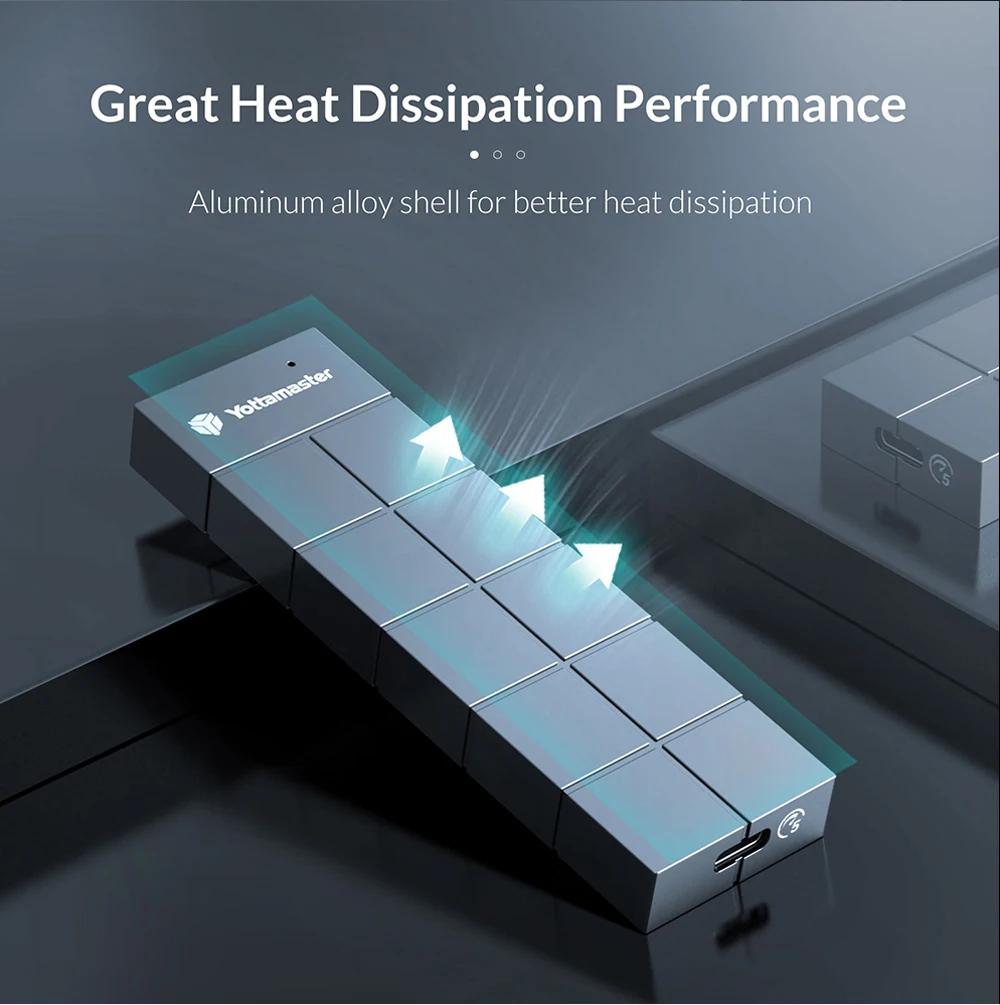Встроенный силиконовый теплоотвод, наш чехол SSD может быстро провести нагрев воздуха в корпусе. Холодный корпус из алюминиевого сплава может эффективно поглощать тепло, излучаемое SSD при работе.
