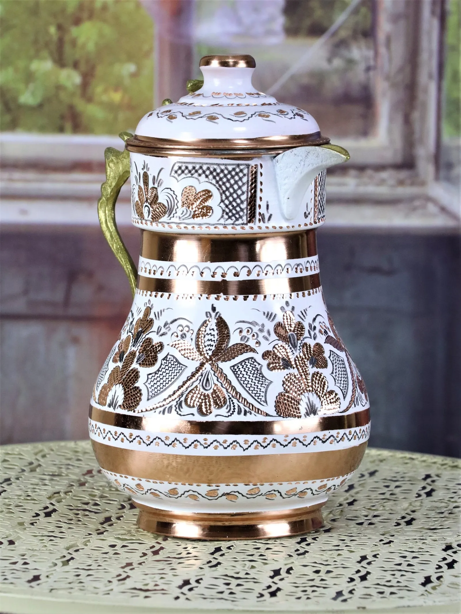 Отзывы о Morya Copper Water Pitcher with Lid Beverage Carafe Elegant Decanter Jug Juice Handmade Vintage Style Ayran Drinkware White 2L | Дом и сад