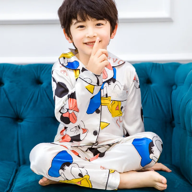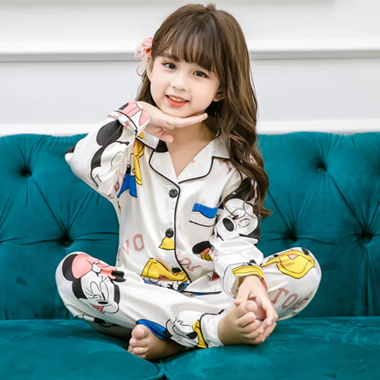 Отзывы о От 3 до 14 лет Детские одноцветные атласные пижамы шелковая пижама с Микки Маусом и