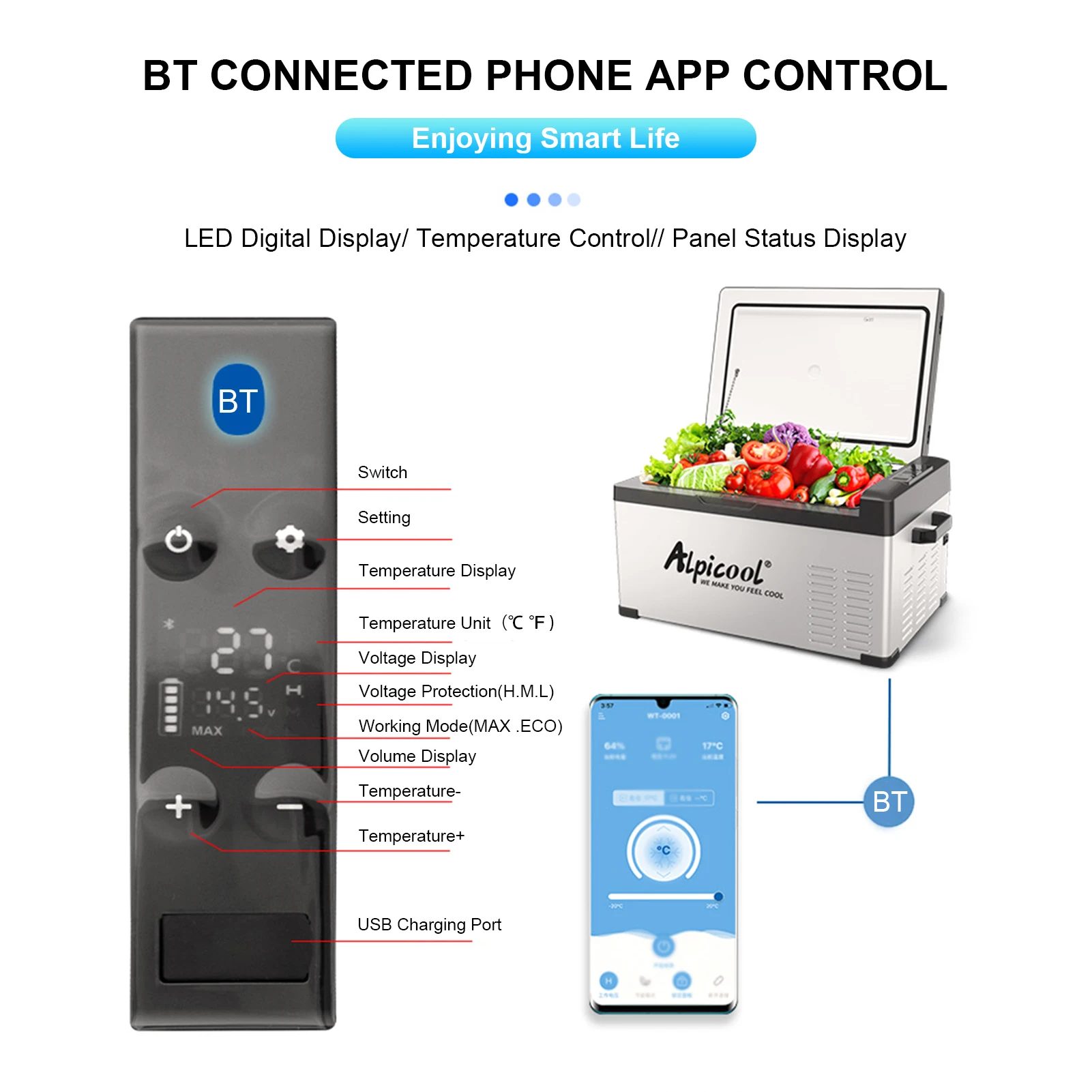 (Необязательно)Интеллектуальное управление через приложение p-hone через BT, подключенное без t-ime и ограничения пространства, и поставляется с USB зарядным портом на панели LEDsdigital для гибкой зарядки.