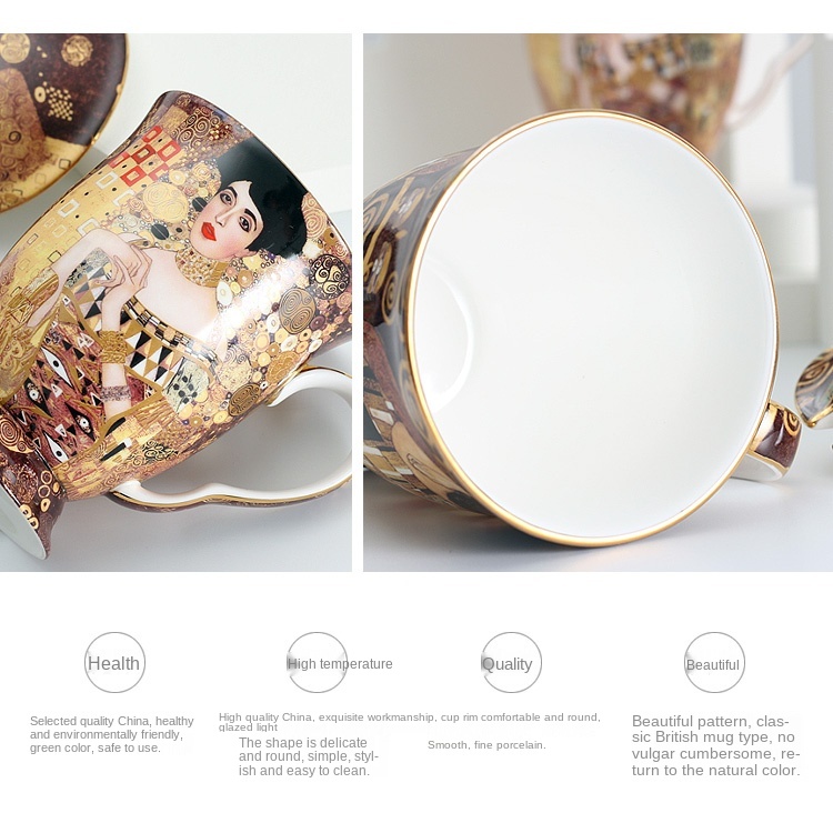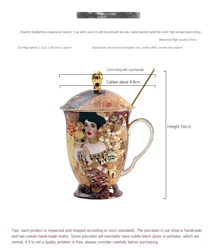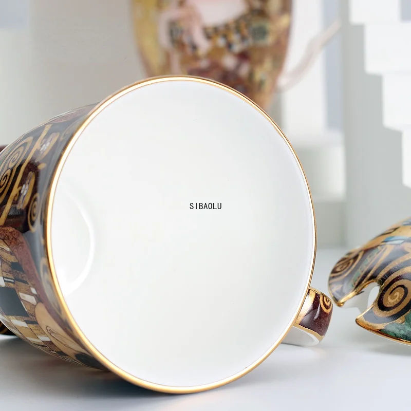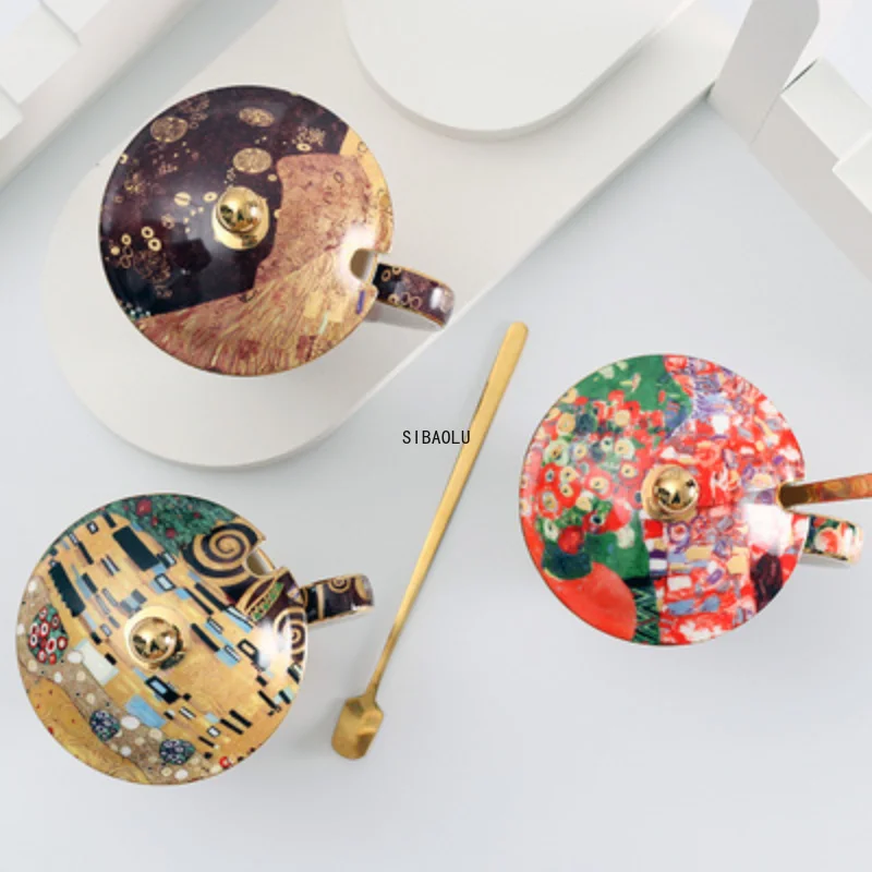 Отзывы о Кофейная чашка с крышкой и ложкой старинная китайская чайная Klimt рисунком