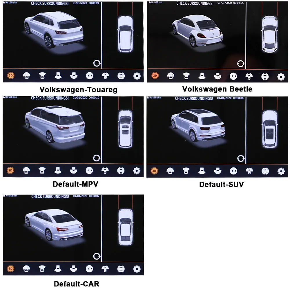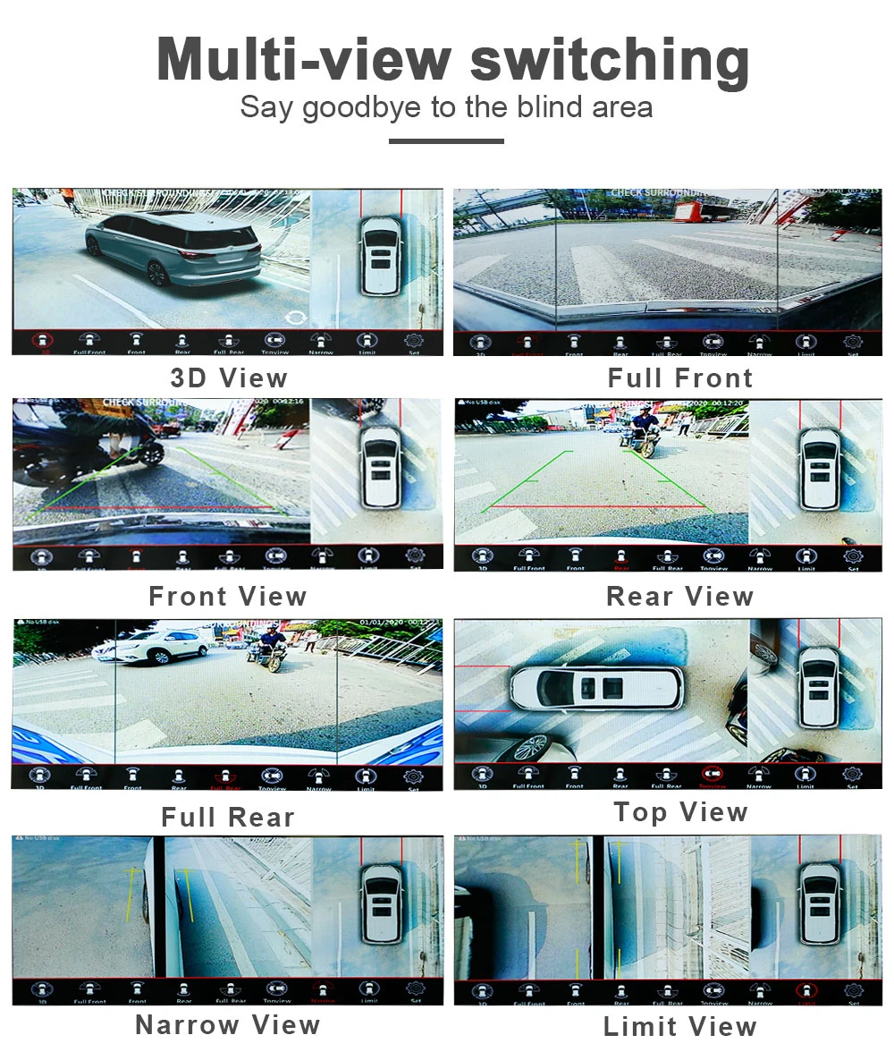 Когда автомобиль задним ходом, поверните влево или вправо, 360 система триггера сигналом лампы, автомобильный экран автоматически переключается на задний, левый, правый вид, затем показывает передний вид после запуска. С функцией мониторинга парковки и видеорегистратором