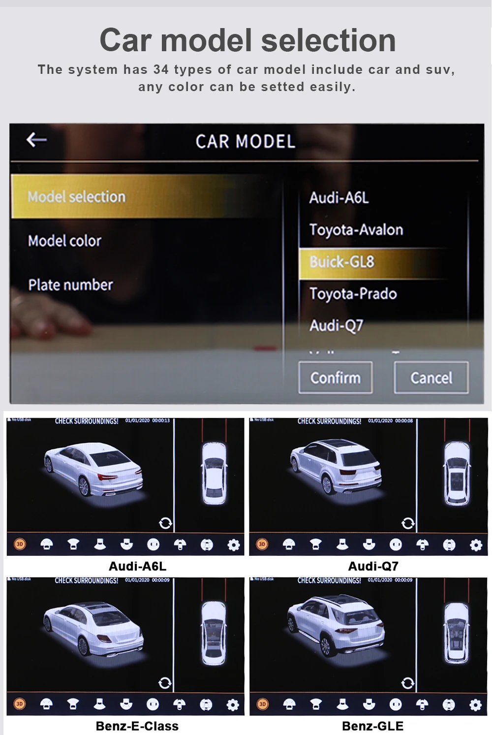 3. После запуска автомобиля, автоматически круговой дисплей, также можно регулировать угол с помощью пульта дистанционного управления