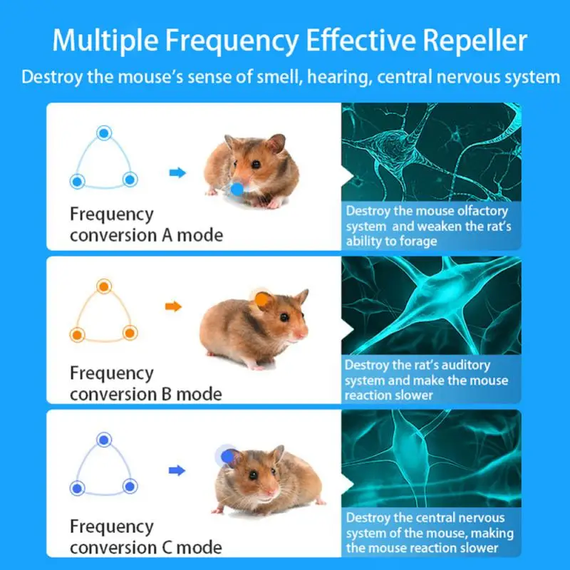 Отпугивайте крыс, летучих мышей, комаров, мух, тараканов, муравьев, блох, геккона и пауков.