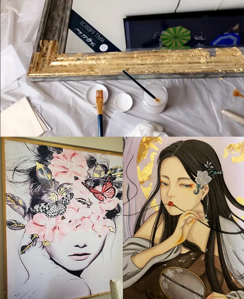 Использование:Позолоченный клей нужно смешивать 1:1 с водой, прозрачное покрытие нужно смешивать с 20%-30% водой