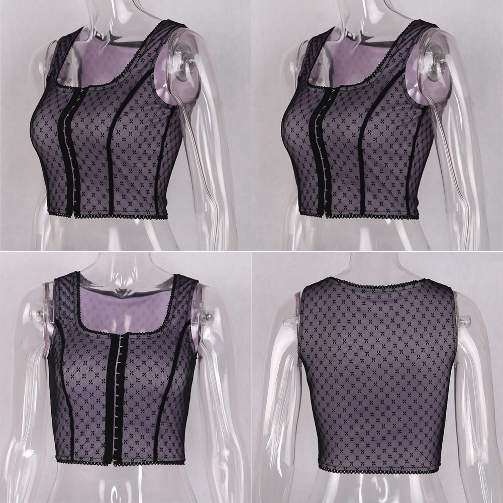 Женский новый сексуальный сетчатый трикотажный бандажный жилет с волнистыми точками, укороченный топ без рукавов, летний укороченный топ на бретельках, клубная одежда