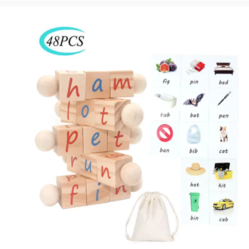 Монтессори фонетические блоки для чтения обучающая игрушка орфографическое обучение основные слова и буквы воловья вращающийся кубик деревянная детская игрушка