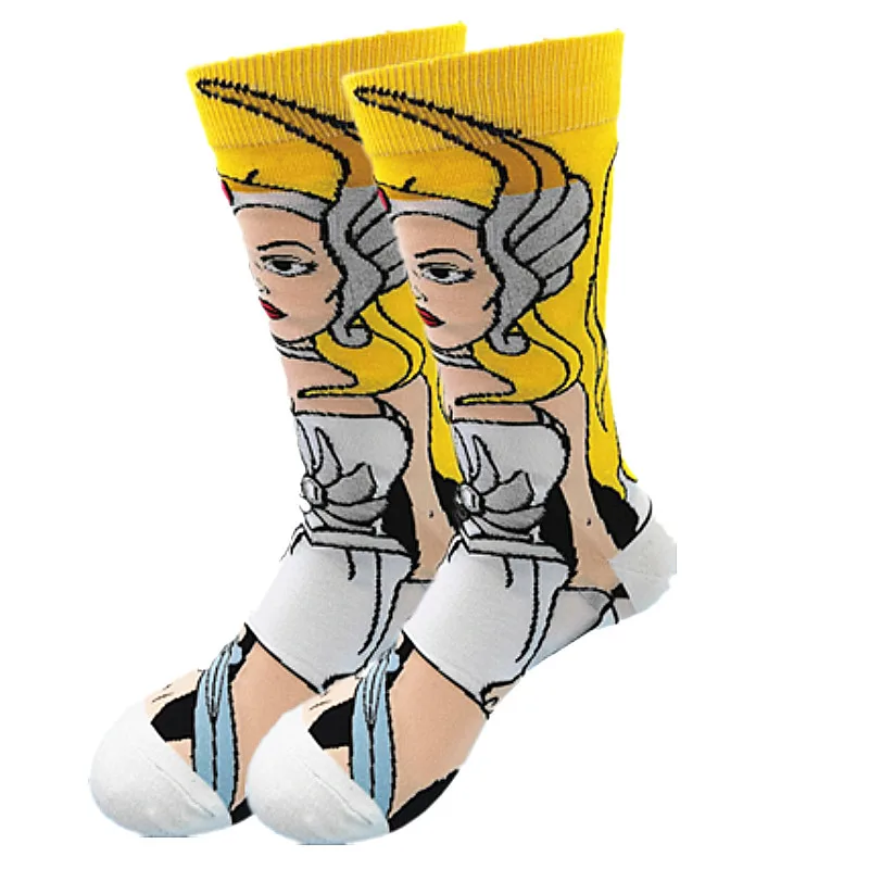Мужские забавные зимние теплые носки с мультяшным аниме клоуном, длинные носки для мужчин, крутые носки с круглым вырезом, уличная мода, Прошитый узор
