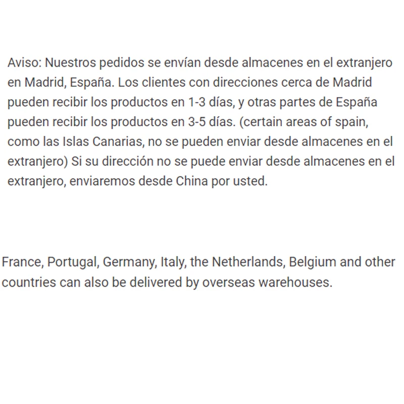 Примечание: наши заказы отправляются с зарубежных складов в Мадрид, Испания. Клиенты с адресами возле Мадрид могут получить товары в течение 1-3 дней, а другие части Испании могут получить товары в течение 3-5 дней. (Испанские беспошлинные зоны, такие как Канарские острова, не могут быть доставлены с зарубежных складов), если ваш адрес не может быть доставлен с зарубежных складов, мы отправим для вас из Китая.Франция, Португалия, Германия, Италия, Нидерланды, Бельгия и другие страны также могут быть доставлены зарубежными складами.Если вам нужна наволочка, вы можете купить ее отдельно. Выберите цвет и наволочку.