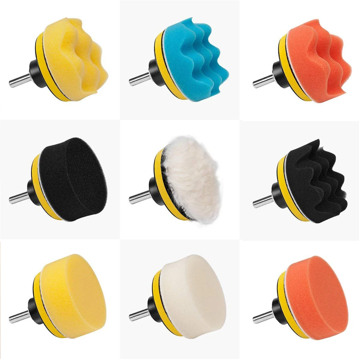 Посылка включает в себя:Губка полировки колодки, шерстяные буферные площадки, адаптер сверла, присоска.