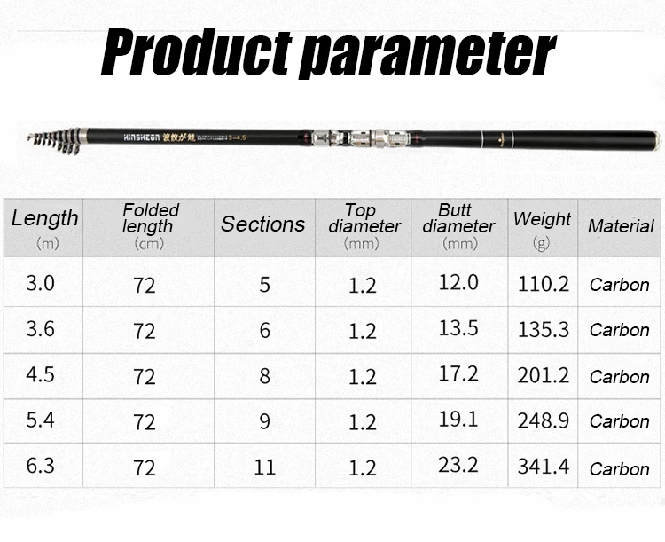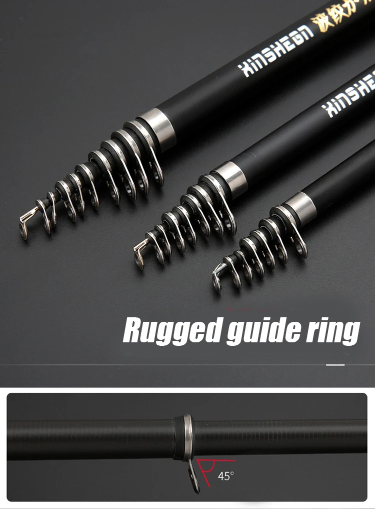 1. Questa canna da pesca Je realizato in fibra di carbonio, forte e durevole.