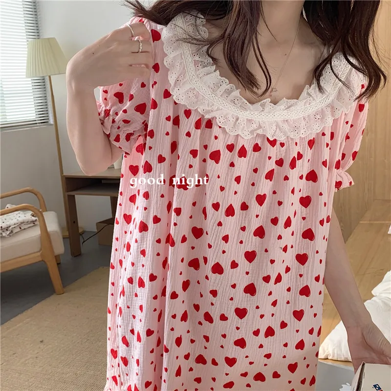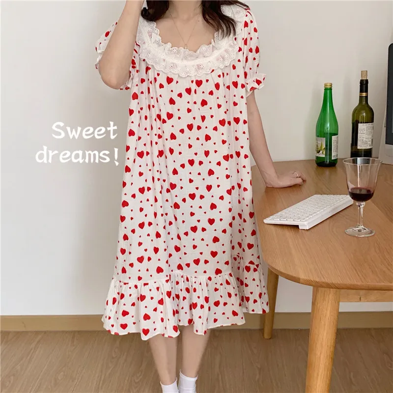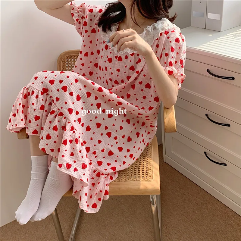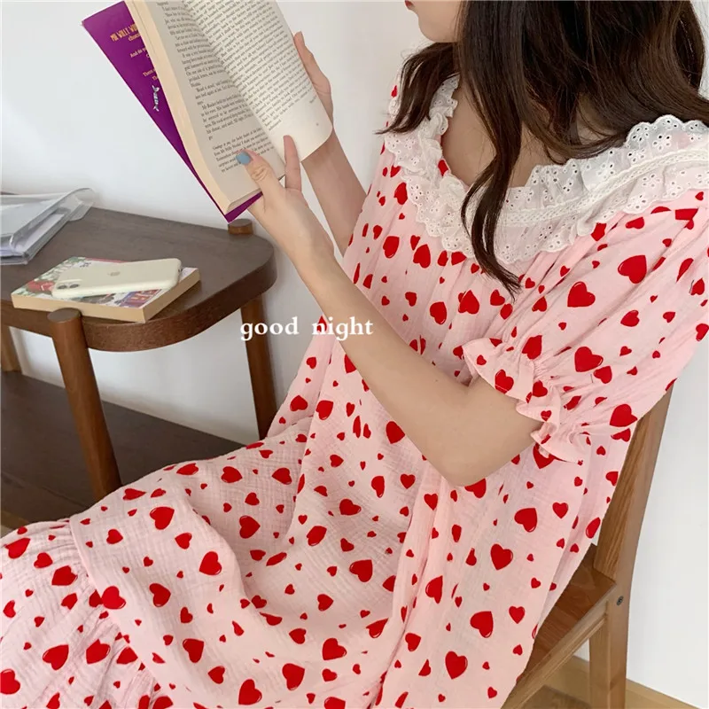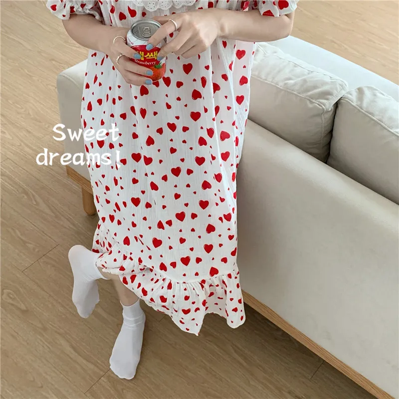 Отзывы о Летняя ночная рубашка с милым принтом сердца одежда для сна в Корейском стиле