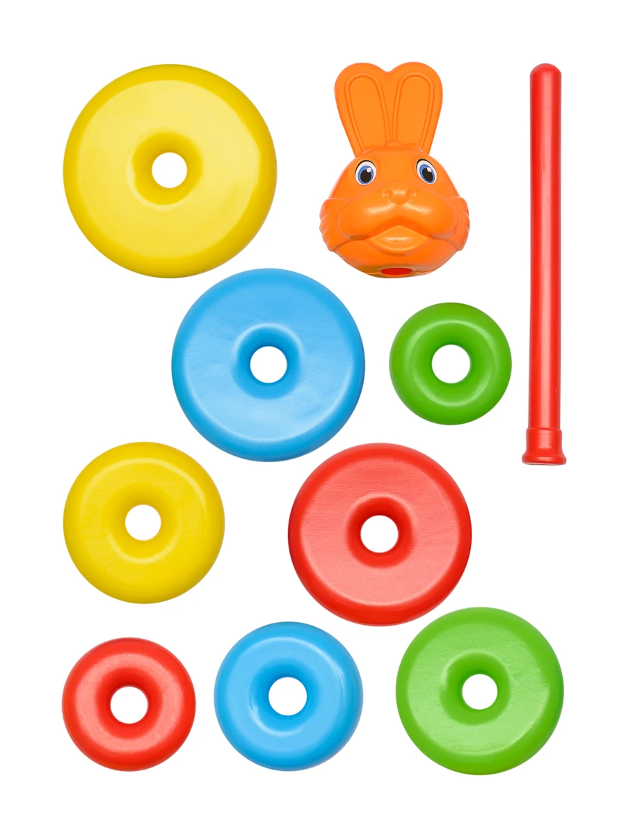 Пирамида Животные высота -30-32 см см 8 колец с Головой животного (Заяц, Лиса, Медведь).