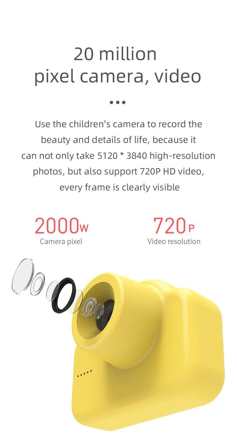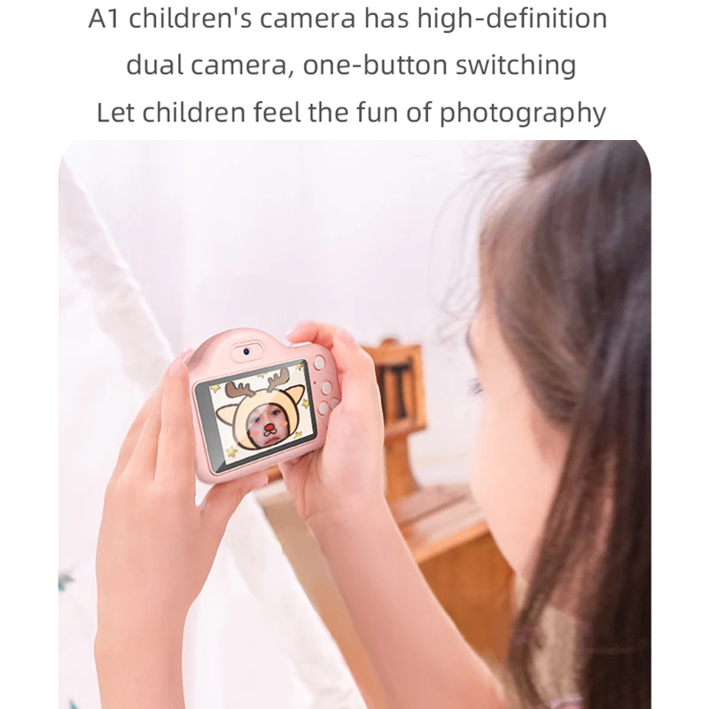 1. Модель: A1 2. Название продукта: Двойная камера с рисунком Детская цифровая камера 3. Максимальная емкость расширения: 32 г 4. Разрешение: 20 миллионов пикселей до и после 5. Фотография: 5120*3840 пикселей 6. Видео: 1280*720 пикселей 7. Функция: фото наклейка, фильтр, непрерывная съемка, таймер, Автоматическая яркость, автоматическая регулировка цвета 8. Размер экрана: 2 дюйма 9. Емкость аккумулятора: 600 мАч 10. Языки: китайский упрощенный, традиционный, английский, Японский, корейский, немецкий, тайский, французский, испанский, турецкий, португальский, русский (другие языки могут быть настроены) 12. Вес: 0,5 кг 13. Упаковочный лист: камера A1 * 1 Защитная крышка объектива * 1 Руководство по эксплуатации * 1 Мультяшная наклейка * 1 Ремешок * 1