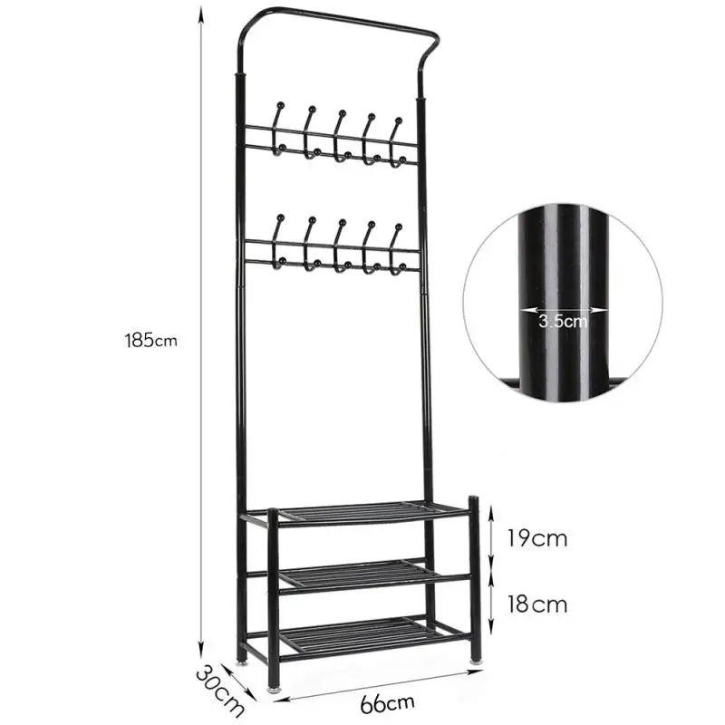 Легко разбирается, можно вешать одежду, обувные стеллажи, шляпы и шарфы, удобно для многофункционального использования!